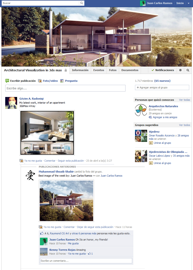 Tengo el honor de participar en la comunidad de facebook Architectural Visualization in 3ds max y que el render de la casa cortés sea elegido como el render de la semana, gracias amigos!