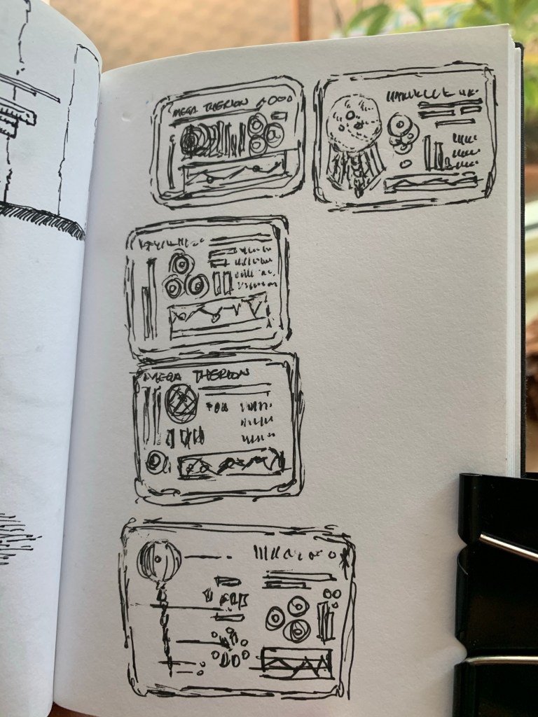 For this image, I experimented with a UI design, showing up as a scientist working on a mysterious project. I tried many methods, first a sketch in my notebook, then a sketch in Clip Studio Paint and then I finished the graphic in photoshop. It could be easier to use Illustrator but I’m a Corel Draw guy, Illustrator is on my list of software that I need to learn.