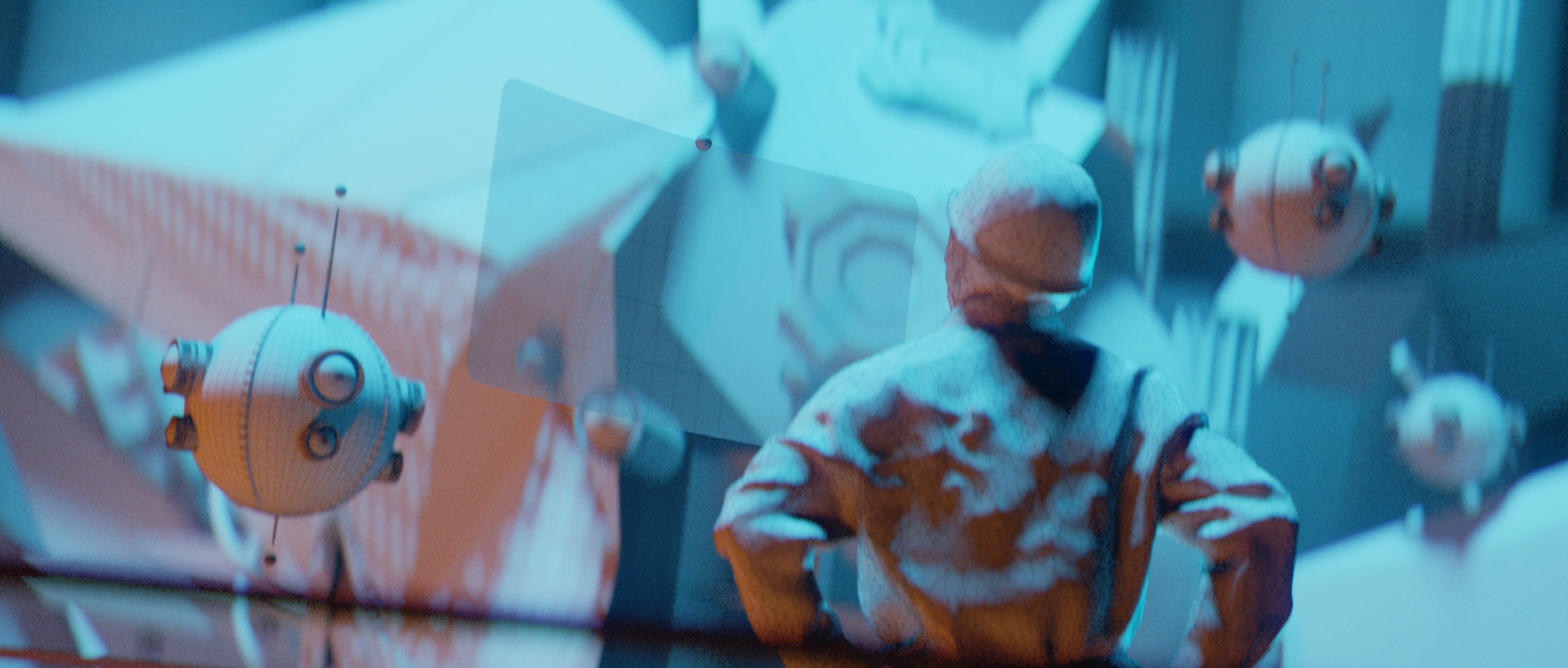 In addition to the UI experimentation, I used an anamorphic lens in Vray which gives me a beautiful bokeh as a result of the Depth of Field.